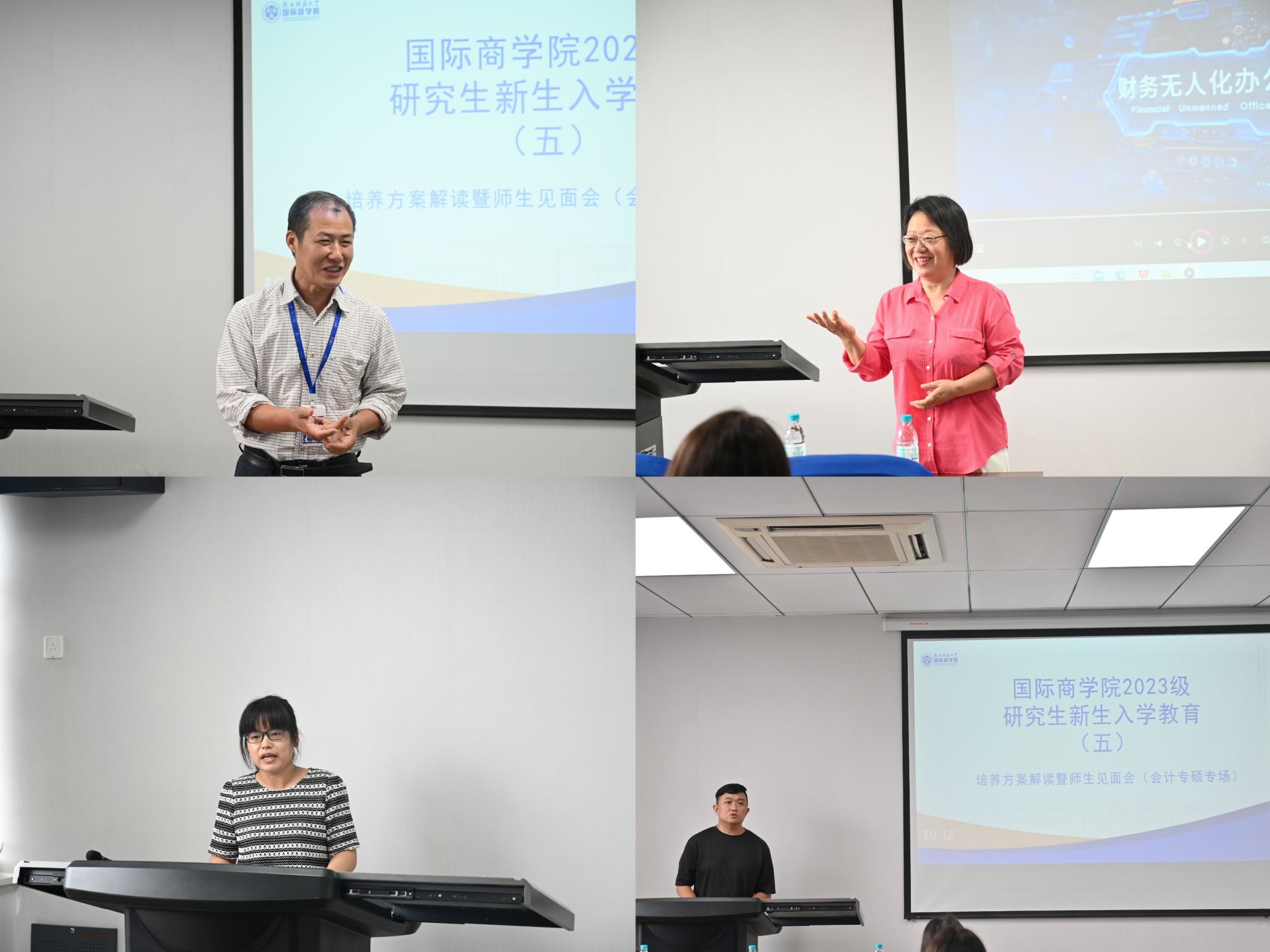 会议伊始,安萌从会计专业硕士研究生在校学习整体安排、会计专业硕士公司产品方案、其他文件要求等三个方面向同学们全面介绍了公司的课程安排、论文要求、实习要求、毕业条件等,帮助同学们清晰、全面地了解了未来三年研究生学习生活规划。