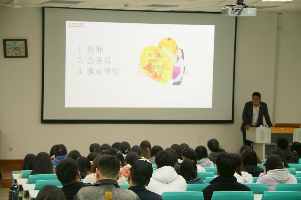 为进一步帮助同学们了解考公最新政策,贯彻落实“强指导,稳就业”的指导方针,助力公司学子高效备考,制定科学的备考规划、掌握高效的学习技巧,近日,公司研究生会就创服务部在文津楼102学术报告厅举办了“公考、事业编”专题讲座,师大中奕教育柳亮亮老师担任主讲,公司部分研究生、本科生参加了讲座