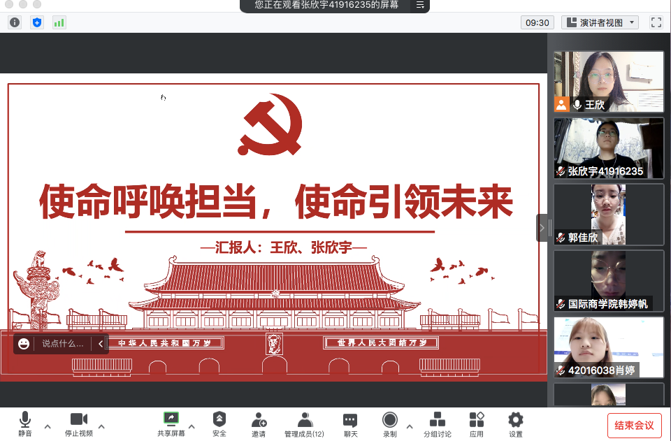 首先,张欣宇同志领学习近平总书记重要文章《新时代中国共产党的历史使命》提出重点把握中国共产党在百年奋斗历史经验中为实现中华民族伟大复兴的三个深刻认识三个“必须”以及“四个伟大”,强调在日常生活学习中要更好把握和运用党的百年奋斗历史经验并且更加明确中国共产党员的初心与使命