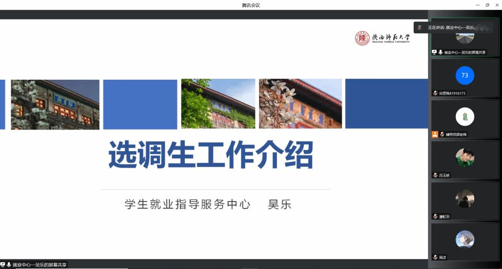 首先,吴乐从选调生的定义与国家选调生工作的关键节点出发介绍了选调生的“前世今生”。随后,吴乐围绕着选调生的分类、报考的资格条件、选调生录取比例、选调生的优势和待遇、选调生与公务员的区别等内容深入分析,建议同学们结合自身条件积极报考选调生。最后,吴乐向同学们详细介绍了考试时间、考试内容、2021年陕西省内笔试情况等内容,建议同学们尽早确定目标,积极备考。紧接着,张媚从三个方面介绍了选调生的相关内容,包括对选调生的认识、选调生基本政策、选调生考试的重点方法梳理。她鼓励同学们要及时关注国家政策、善于整合资源、多做前期准备,做到目标笃定、坚持不懈、执着努力。