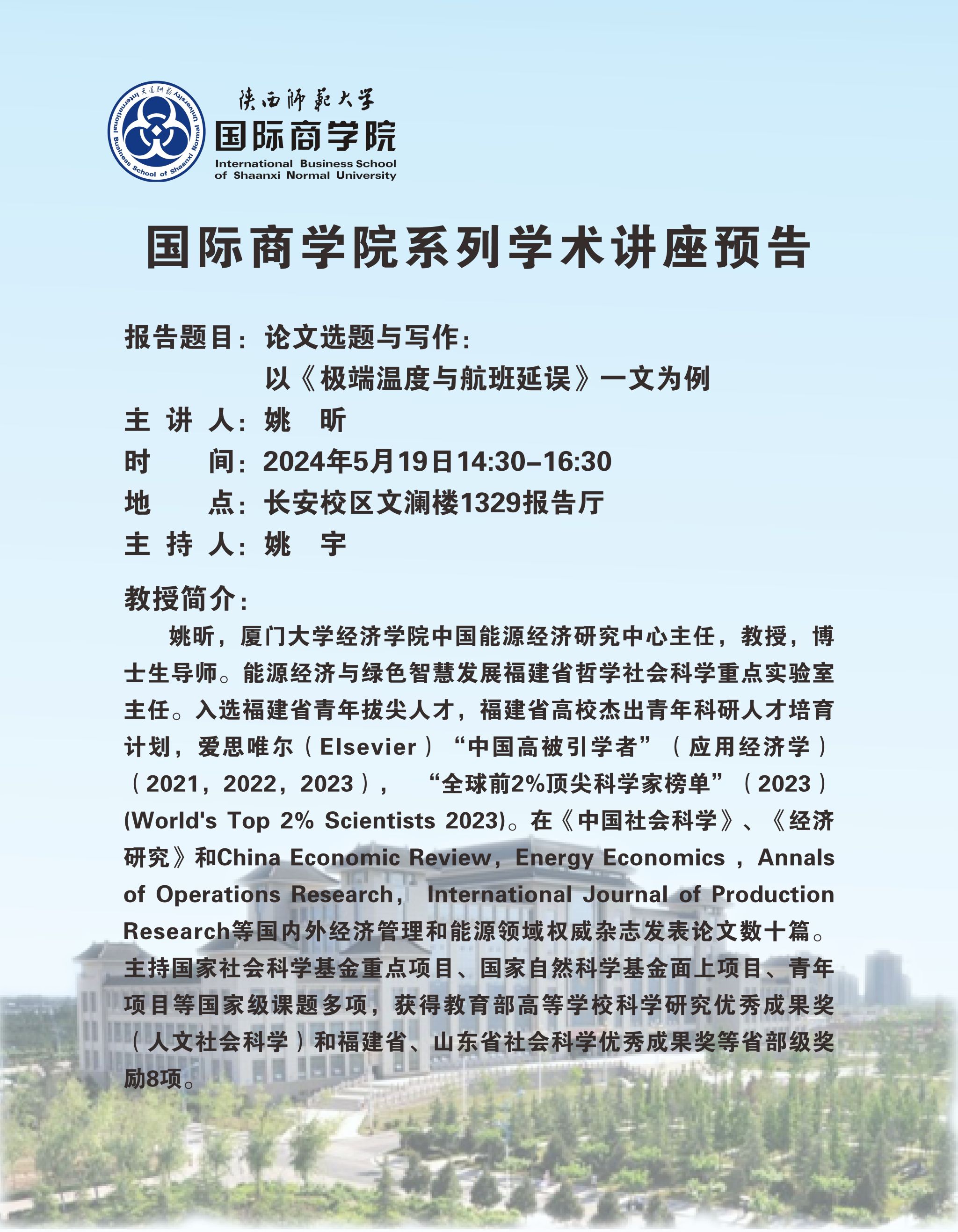 学术讲座预告——论文选题与写作:以《极端温度与航班延误》一文为例