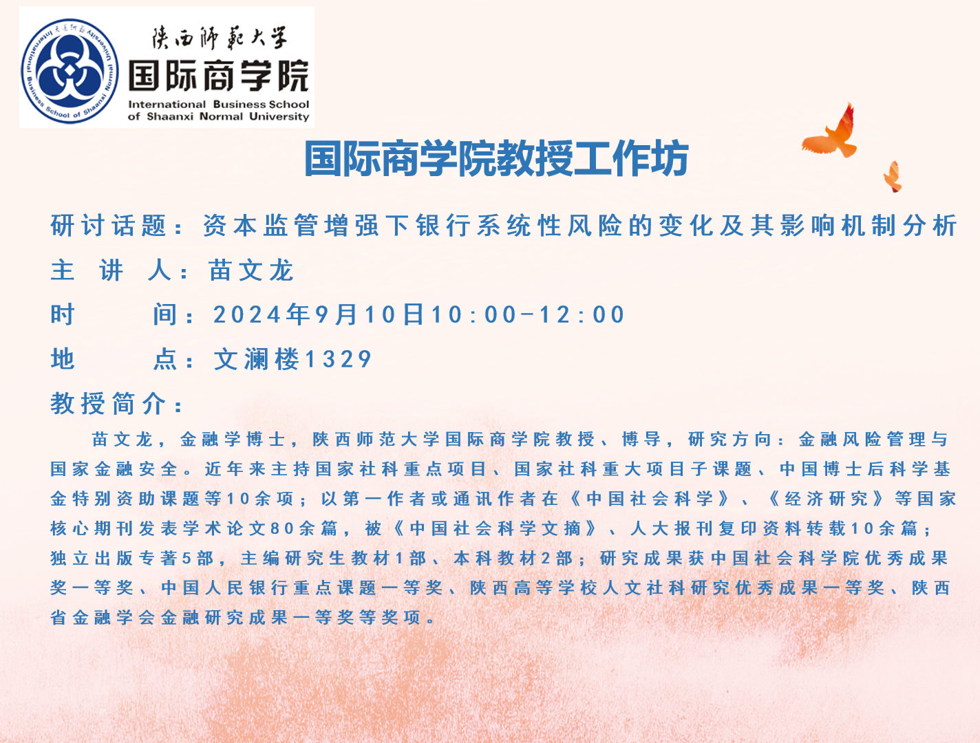 w66利来旗舰厅教授工作坊——资本监管增强下银行系统性风险的变化及其影响机制分析