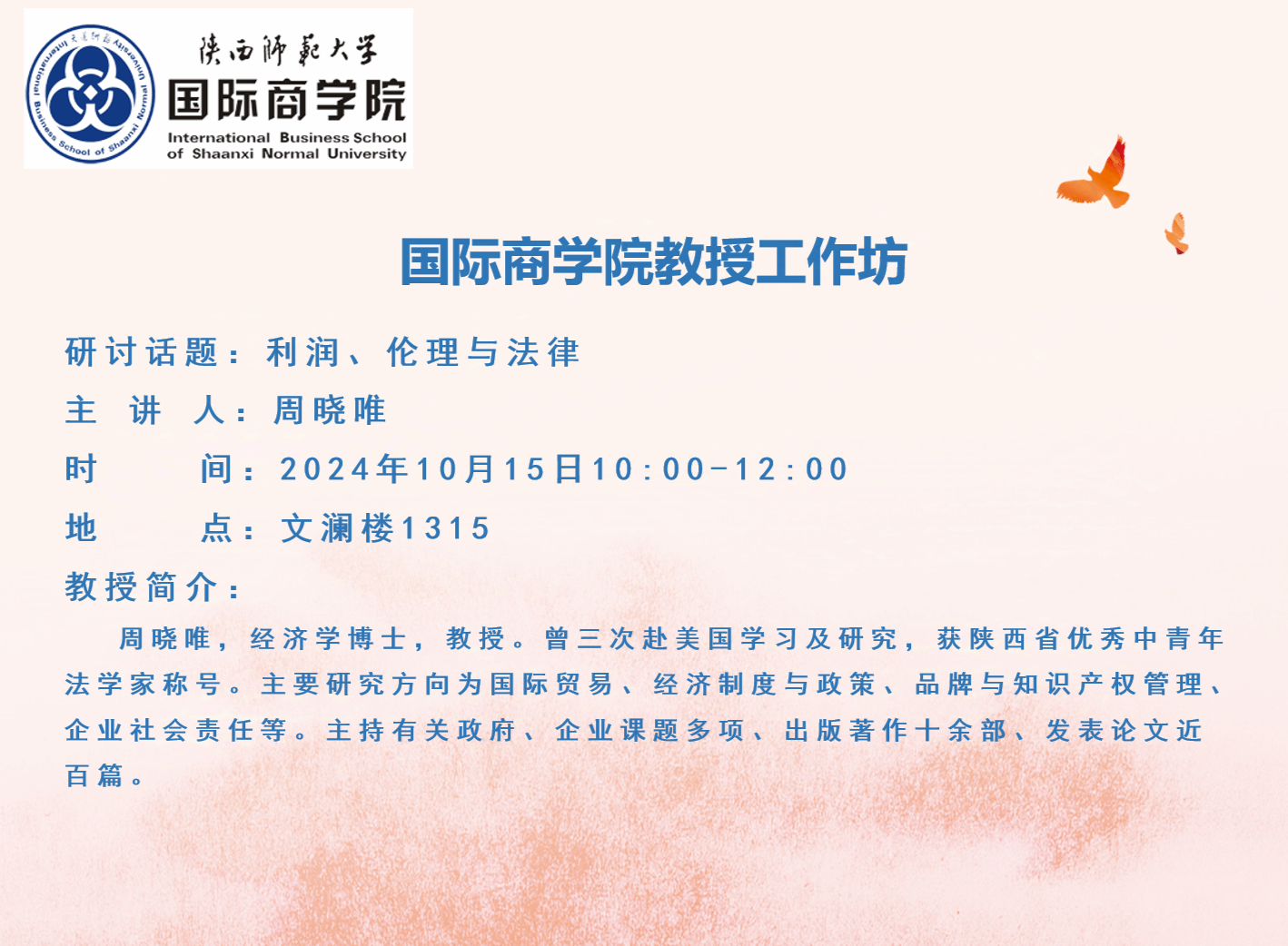 w66利来旗舰厅教授工作坊——利润、伦理与法律