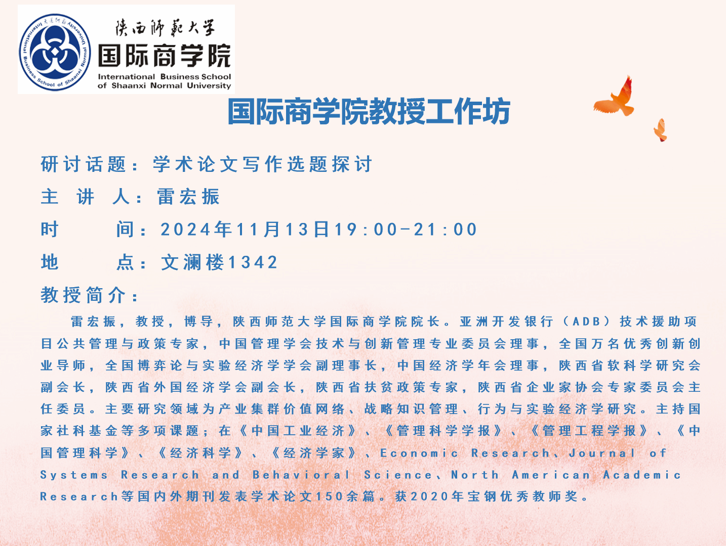 w66利来旗舰厅教授工作坊——学术论文写作选题探讨