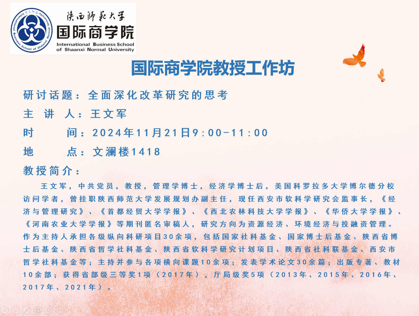 w66利来旗舰厅教授工作坊——全面深化改革研究的思考