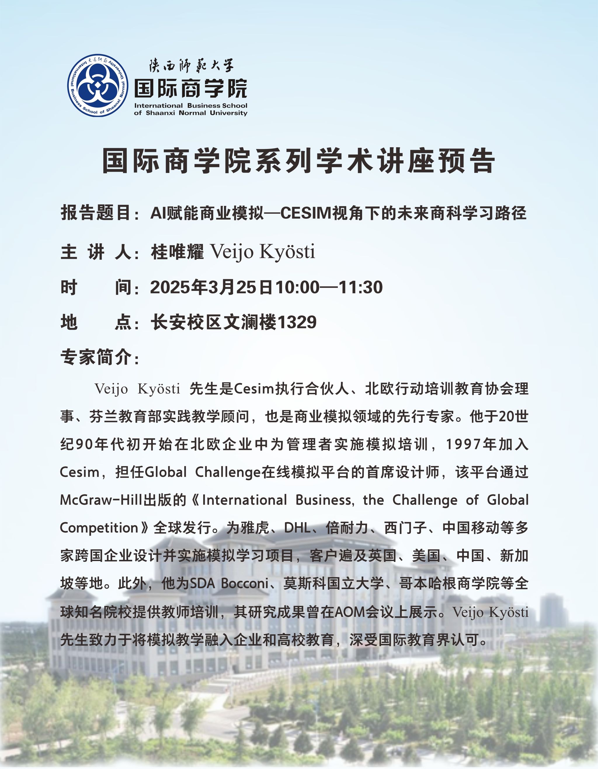 学术讲座预告——AI赋能商业模拟——CESIM视角下的未来商科学习路径