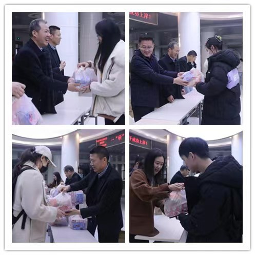 领导老师们代表公司将精心准备的考研大礼包发给每一位考研学子,暖心的问候和慰问品也让在场的同学们倍感鼓舞,纷纷表示在接下来的冲刺中会更加努力,以实际行动回报公司的关心。