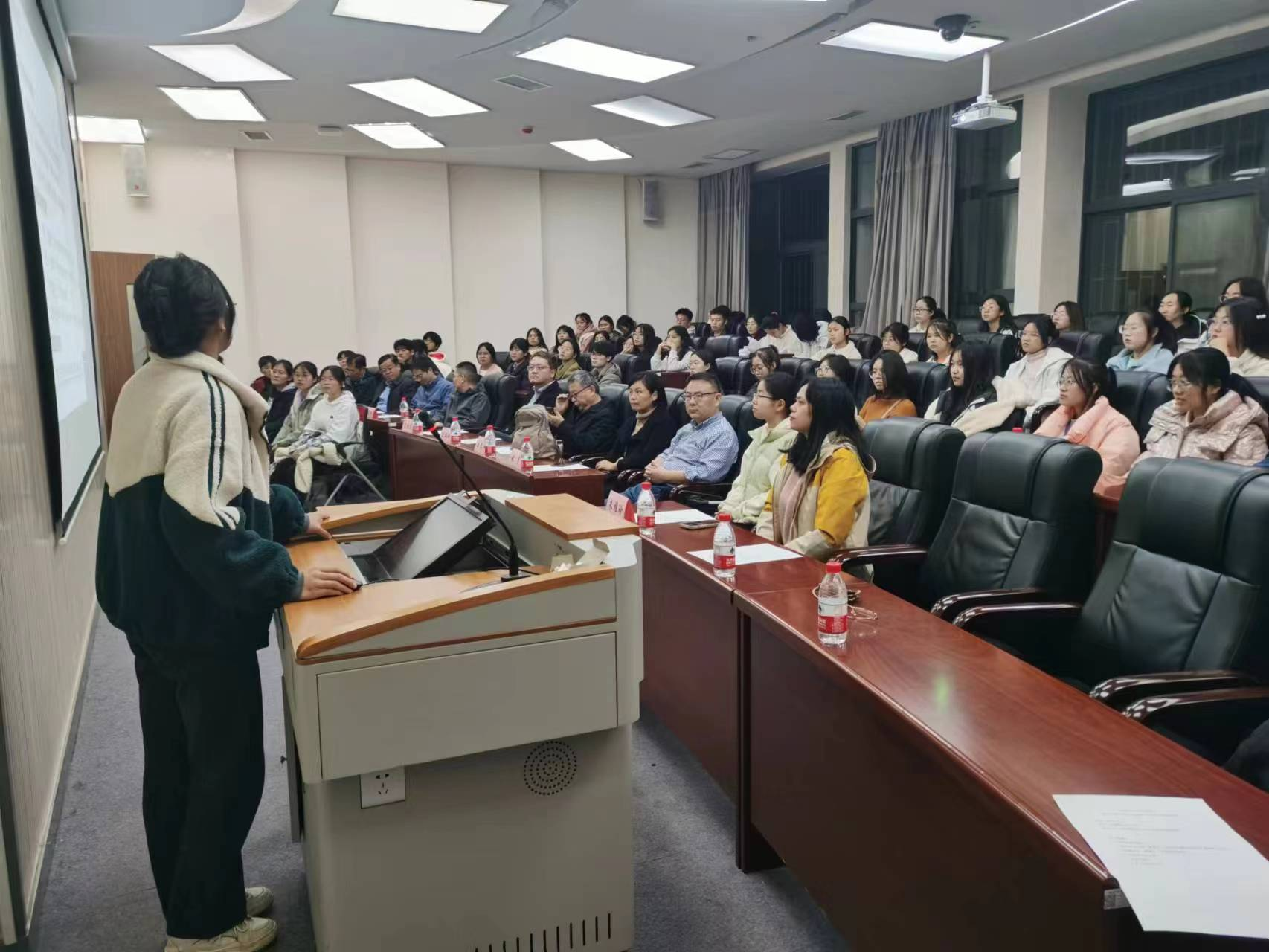 20231121日,经济系在文澜楼1101教室召开师生见面会,同时开展经济支部与本科第一党支部共建活动。经济系教师与2023级经济各班同学参与到此次活动中,活动主要分为两个阶段:首先由高年级员工进行经验分享;其次,进行师生互动,为员工答疑解惑