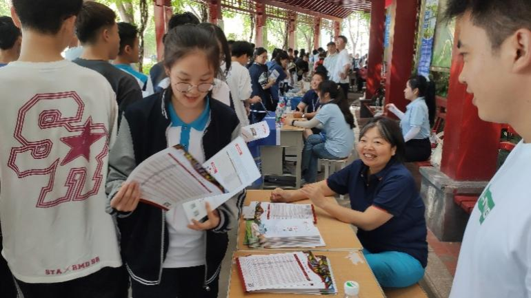 6月14日,本年度招生工作在陕西省蓝田县拉开序幕。公司工商管理系张嘉望老师代表公司、公司在蓝田县田家炳中学进行高考招生咨询宣传,为考生和家长答疑解惑,提供咨询。