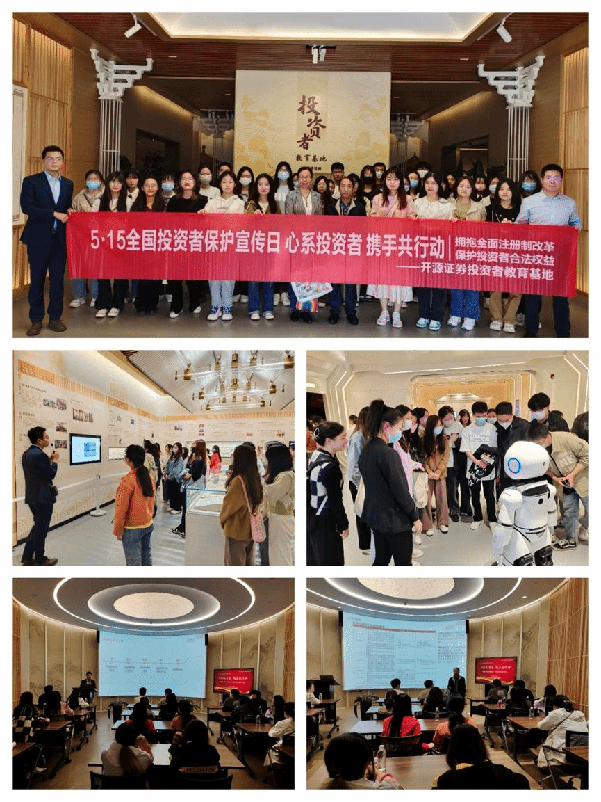 在开源证券投资者教育基地的参观中,工作人员为老师和同学们详细介绍了企业历史沿革、发展轨迹、现有成果等,并通过知识、互动体验,让同学们深入了解了证券交易的整个过程。其中,在互动体验环节,老师、同学们通过提起一万、十万、一百万纸质人民币从而在感官上真实体验到了“百万重量”。在开源证券投教基地,生动的资本市场发展历史,有趣的证券行业发展故事,令人振奋的红色金融史,深深触动了在场的同学;专业的交易软件模拟,精彩的投教产品展示,活泼的AI机器人互动,让同学们在文化、科技的交融中感受资本市场发展的魅力。