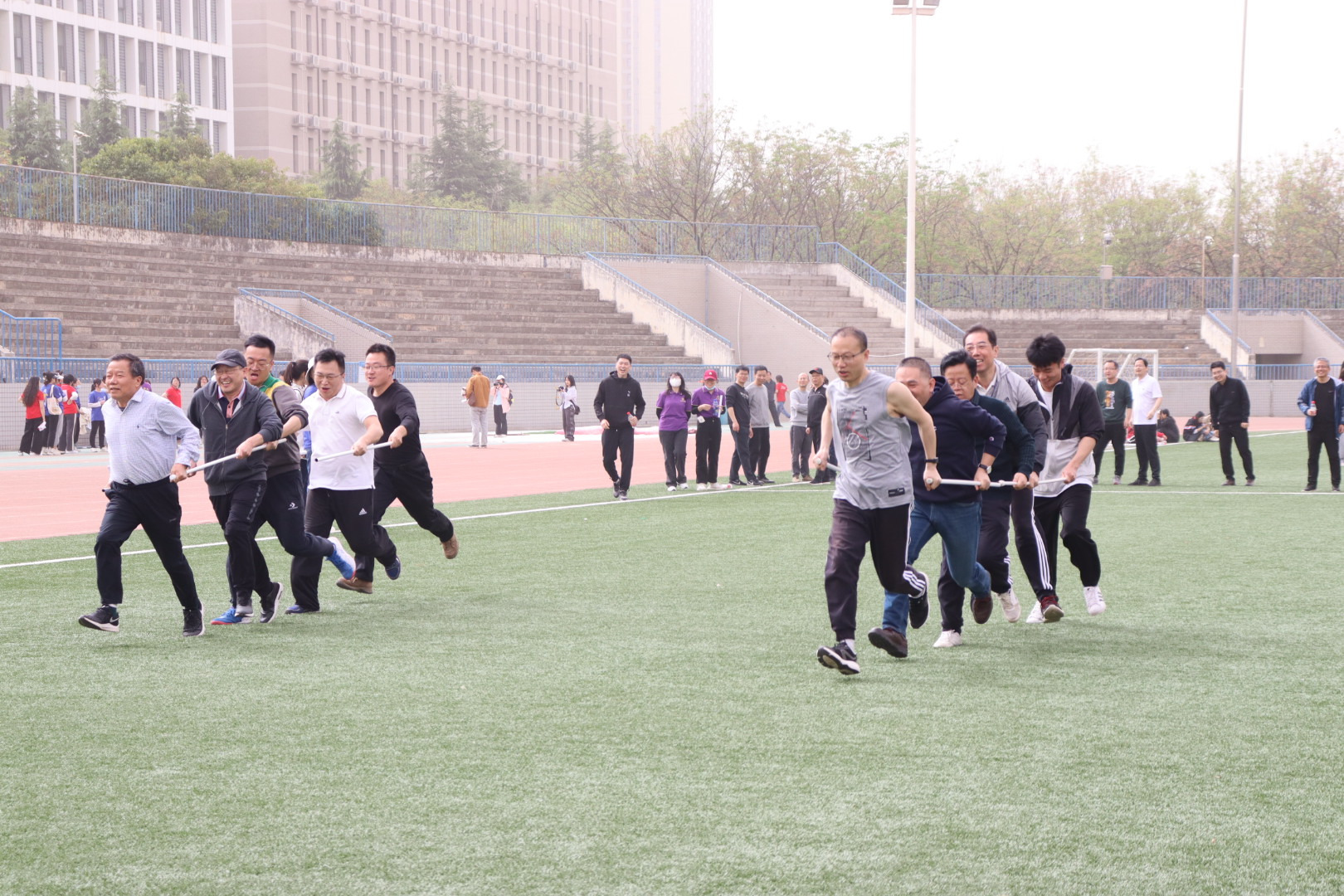 向阳草木青,明媚春光暖。4月11日,由w66利来旗舰厅、马克思主义公司、国家安全公司和哲学公司联合举办的2023年“文澜杯”联合春季运动会在长安校区田径场隆重举办。公司工会认真筹备,为全体教工举办了精彩纷呈的趣味运动项目,成为了田径场上靓丽的风景线。