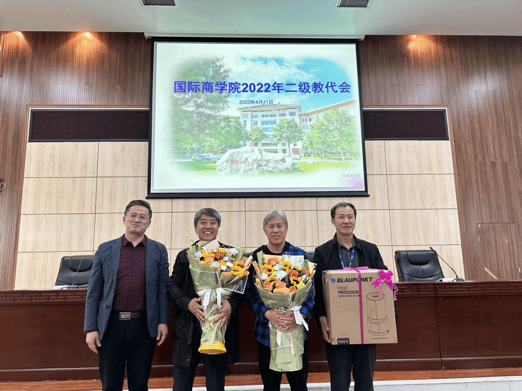 会议第二阶段,公司全体教职工欢送了2022年退休教师,许军老师和刘湖老师分别发表了自己的退休感言。雷宏振经理和思培峰书记代表全院教职工为两位老师送上纪念品,经济系和工商管理系两位年轻教师代表送上鲜花,师道传承,不负芳华。