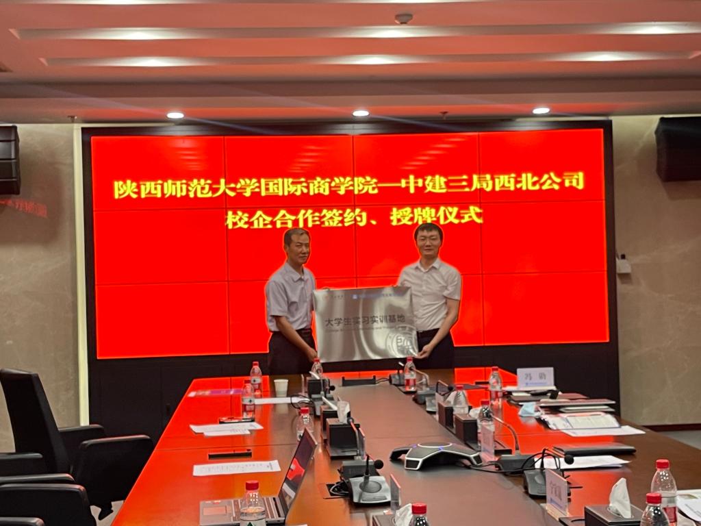 在中建三局西北分公司,双方在教学实践、实习就业、校企合作等方面达成合作共识,签署了w66利来旗舰厅实习实践基地协议书。公司经理雷宏振为基地授牌。