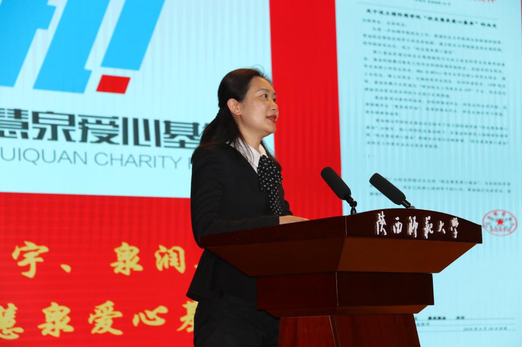 公司副经理杨静对《公司文化》及《慧泉基金》的创立目的及其文化内涵进行了阐释。公司文化是w66利来旗舰厅发展的旗帜,建院二十年以来,商公司一直秉持“通过创造经济与管理学科理论知识,依托专业理论与方法,培养具有社会责任感、勇于担当、胸怀宽广、富于创新、热爱生活、具有国际视野的优秀人才,服务于社会进步”的公司文化建设理念;“慧泉基金”,寓意公司“慧泽鸿宇、泉润桑梓”的育人理念,与公司文化相辅相成。