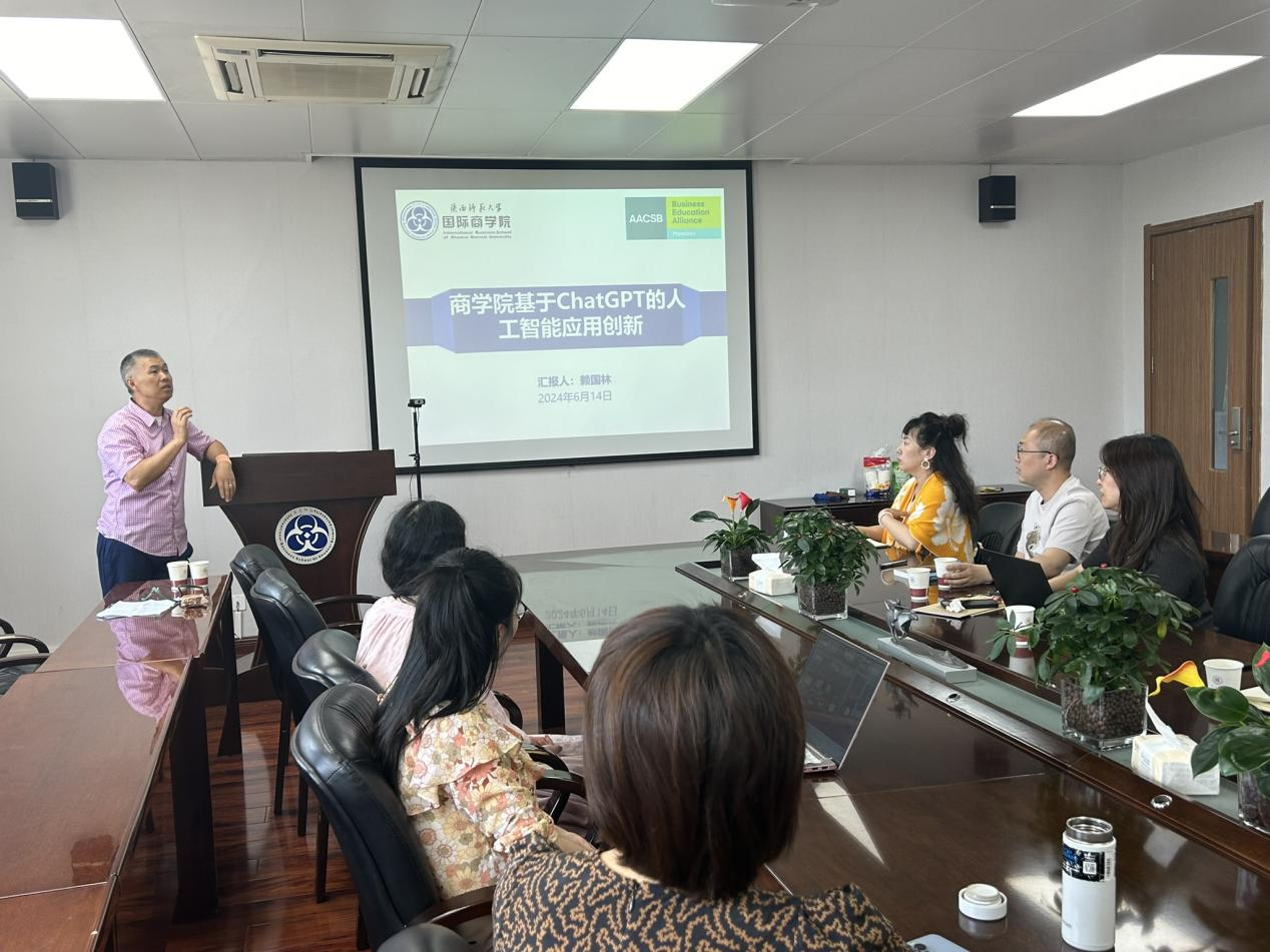 2024年6月14日上午,公司特邀美国路易斯安娜大学商公司赖国林教授在长安校区文澜楼1329举办了“工商管理专业网络课程的设计和资格认证”与“商公司基于ChatGPT的人工智能应用创新”的专题学术讲座,公司师生到场交流学习,讲座由兰娟丽副研究员主持。