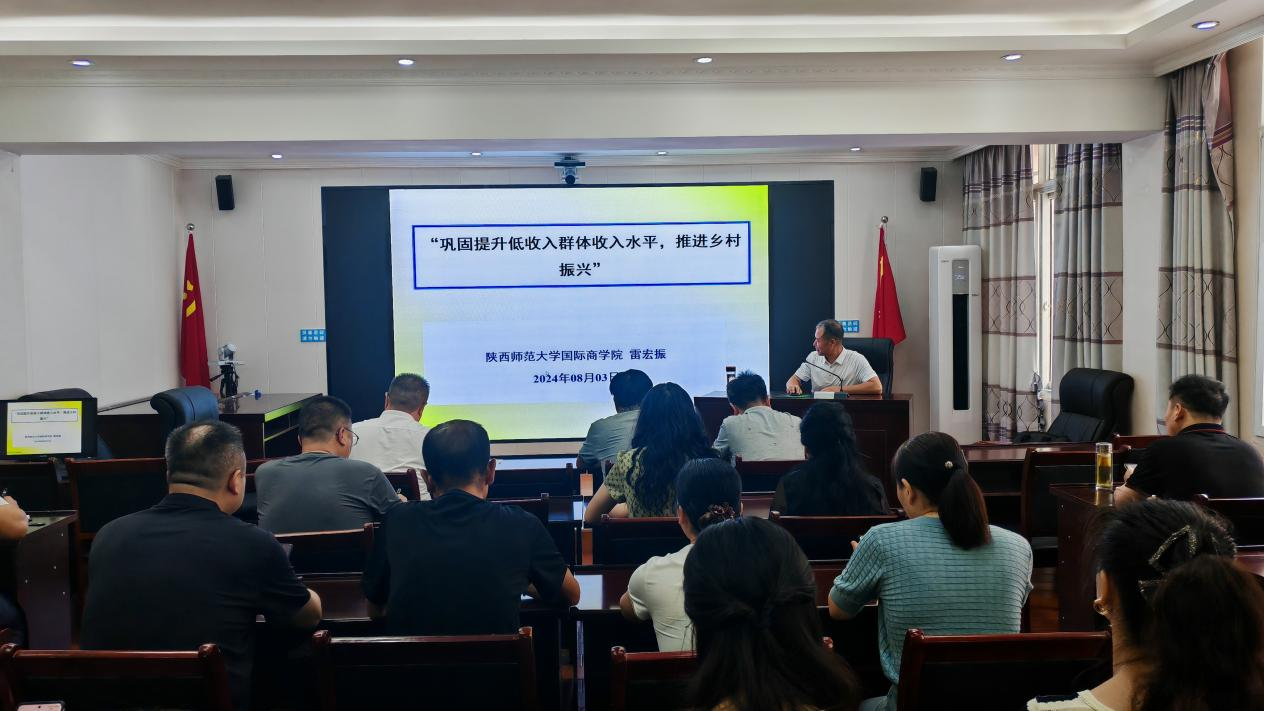 2024年8月4日上午,公司教授雷宏振在陕西省佛坪县农业农村局会议室应邀做题为“巩固提升低收入群体收入水平,推进乡村振兴”报告。报告从党和国家巩固拓展脱贫攻坚成果有效衔接乡村振兴的战略要求出发,分析了过渡期低收入人口收入巩固提升的风险点,提出了低收入人口画像的考虑因素及特征,探讨了稳定提升低收入群体收入水平的着眼点在哪里和新的可能渠道。参加报告的有该县农业农村工作的干部及相关管理人员。报告会后雷教授同与会者进行了交流,报告增进了公司学术研究与现实实际工作的联系,促进了双方联系与合作。