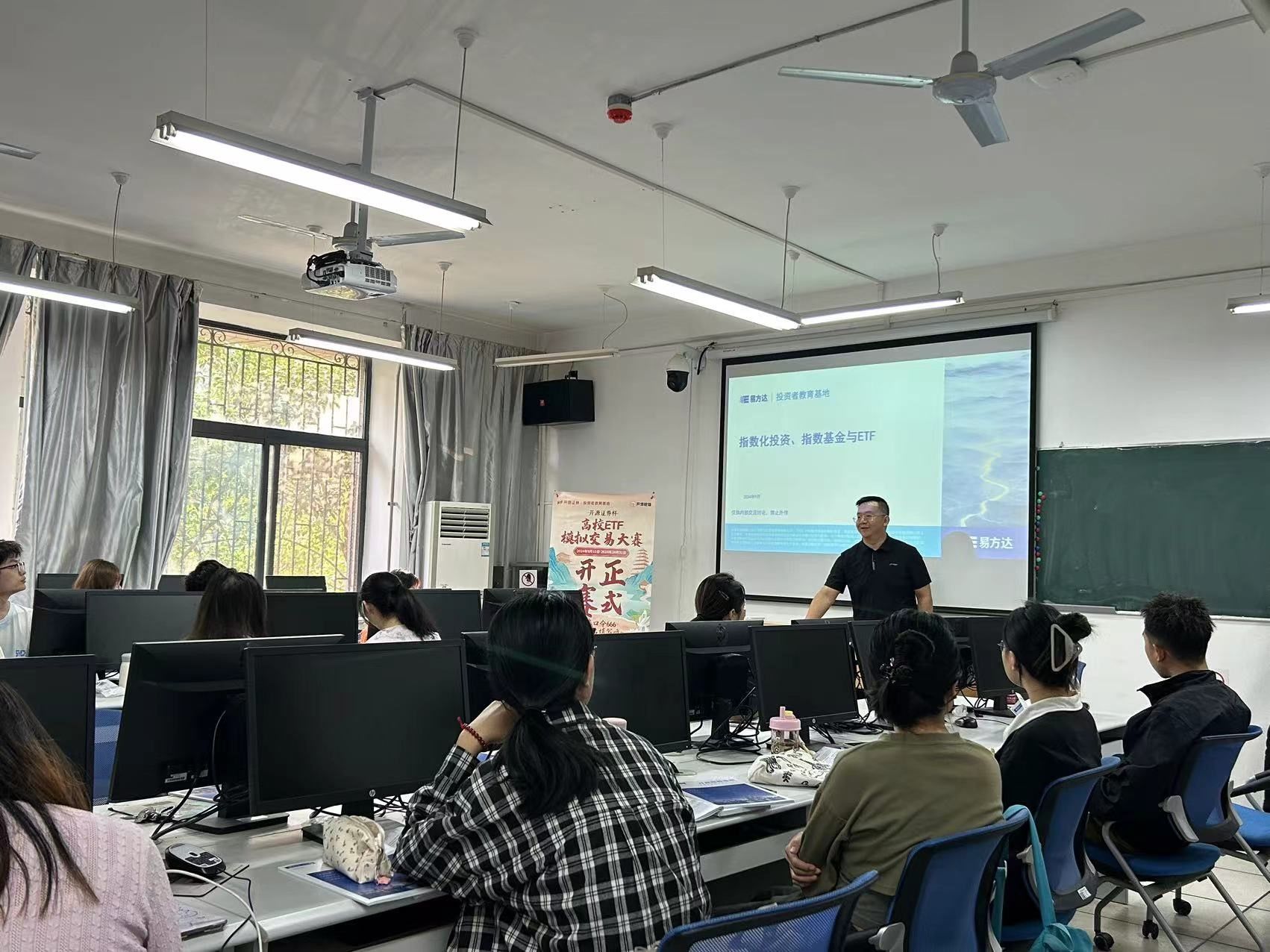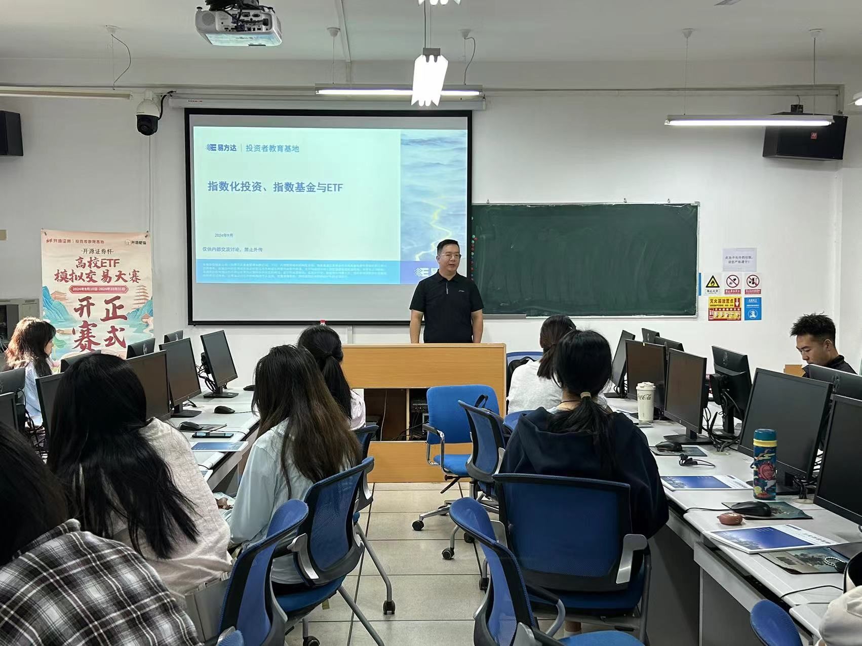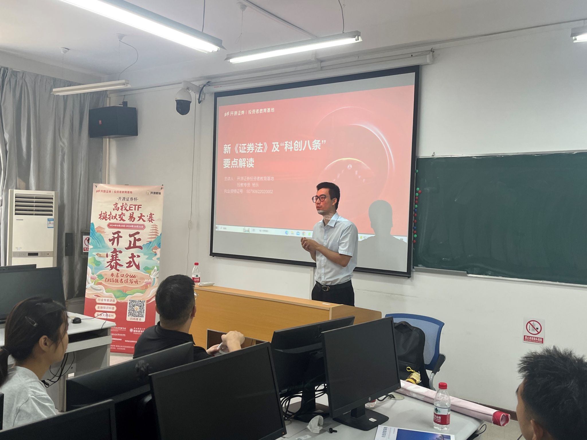 在姜维斌老师讲解完毕后,杨乐老师呼吁大家积极参与由开源证券主办的“开源证券杯-高校ETF模拟交易大赛”,将课业中的理论知识与实践实操有效结合。期待同学们在竞赛中锻炼自身能力,为未来工作打下坚实基础。同学们都表示愿意积极参与,并以此来丰富自己的实践经验。