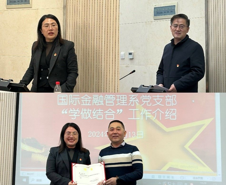 在活动第一环节,中信证券锦业路营业部党支部书记李佳介绍了中信证券以党建引领团队建设情况。她认为,作为一个优秀的企业,应不断走进红色教育基地,深入社会社区开展学习实践活动,积极吸取一切有益的思想成果和实践经验,通过深化团队凝聚力,加强团队战斗力,实现企业持续健康发展。接着,国际金融管理系党支部书记刘杰围绕党支部标准化建设、校企协同育人、举办“精英课堂”、新时代党团教育等内容介绍了本支部“学做结合”基本情况。