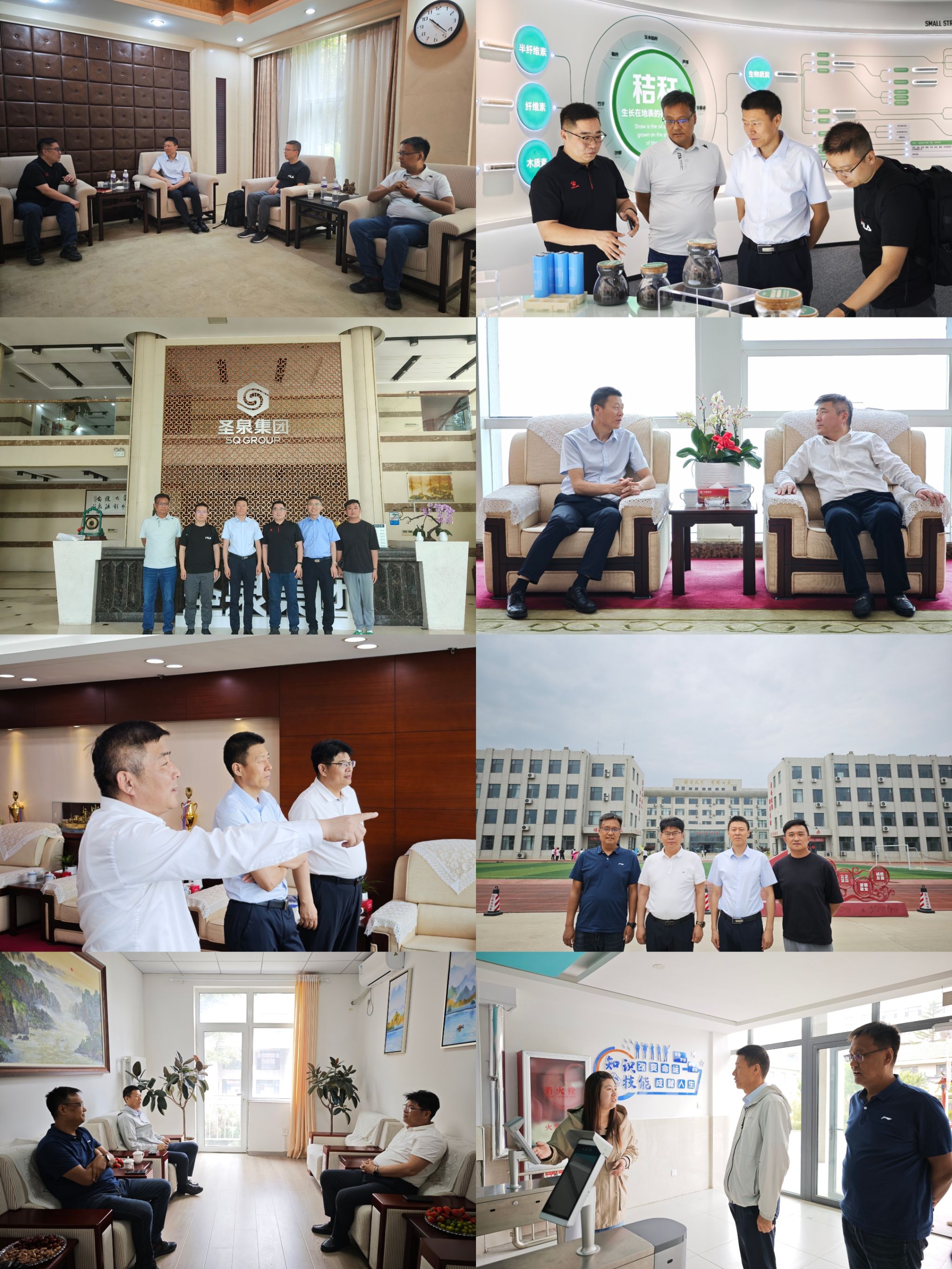 走访过程中,邱远航介绍了公司的团队建设、人才培养、2025届与2026届毕业生分布等情况,希望能与用人单位建立长期、稳定、全面的合作关系,为毕业生挖掘更多岗位资源,实现共赢成长,共同进步。公司一行参观了圣泉集团工业园区与成果展厅,华夏银行青岛分行办公区域、青岛绿泽职业公司教学区与生活园区等地,与用人单位现场交流了用人需求、用人条件、职位划分、福利保障与创新创业经验,同时就实习实践、员工联动、创新创业等方面加强校企合作作了深入探讨。