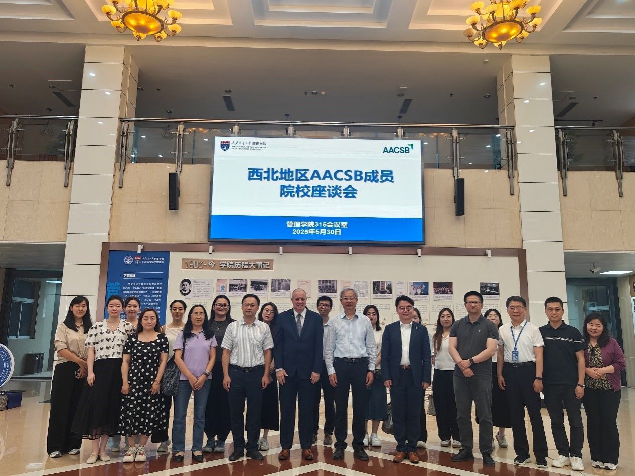 5月30日下午,西北地区高校AACSB成员院校座谈会在西安交通大学管理公司315会议室成功举行。公司国际认证与合作管理办公室(以下简称“认证办”)主任李正峰,认证办干事田之雅、杨博珊参加了本次会议。会议特邀AACSB执行副总裁、全球首席执行官兼亚太区执行董事Geoff Perry 博士和AACSB东亚区负责人徐国栋先生参会报告,并吸引了来自西北地区十余所高校及企业的学界和业界20余位同仁参会研讨。