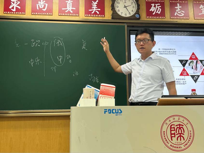 讲座分上下两场进行。讲座伊始,杨赫老师从当前企业招聘重视员工指数化投资经验切入,强调了学习指数化投资的重要性。随后,他首先介绍了投资的几大痛点,具体包括目前国内外企业注册上市机制的差异、市场缺乏持续上涨周期、传统投资方法论的失灵、互联网时代信息流通速度加快等,这些讲解使同学们对股票投资有了更深入的认识。在做好上述铺垫后,杨赫老师提出了解决方案——大类资产配置,并指出应秉持自上而下的视角,科学确定各大类资产配置的比例中枢。最后,他详细向同学们介绍了ETF的定义、特点以及当前主要的ETF投资方向,让同学们对ETF有更加系统全面的认识。/
