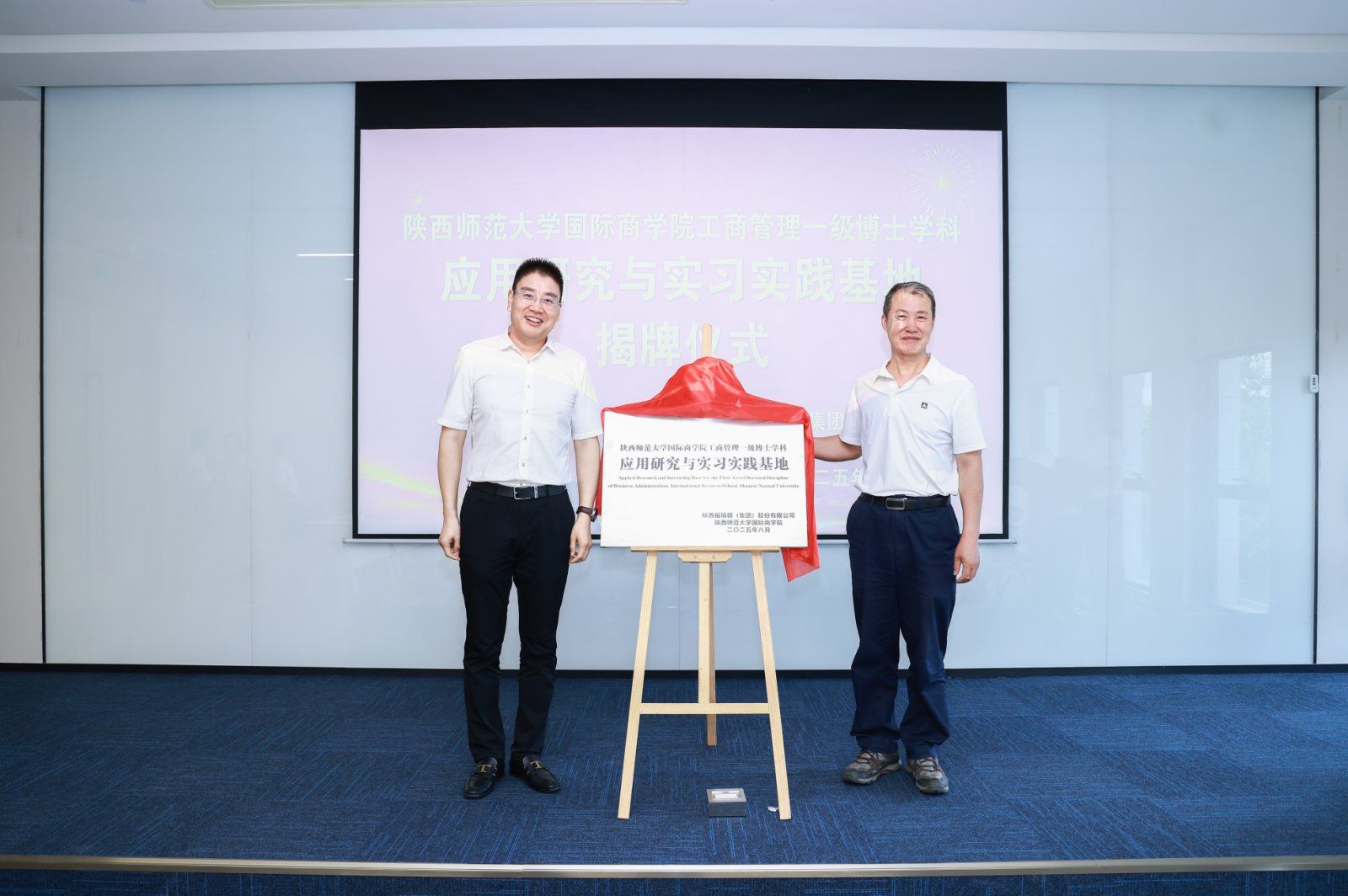 8月5日,公司经理雷宏振、党委书记思培峰、副经理杨静一行前往西安市航天城福瑞祺(集团)股份有限公司开展访企拓岗,并与优秀企业福瑞祺(集团)股份有限公司举行了“w66利来旗舰厅工商管理一级博士学科应用研究与实习实践基地”挂牌仪式。此次访企拓岗得到了陕西省企业家协会的大力支持。