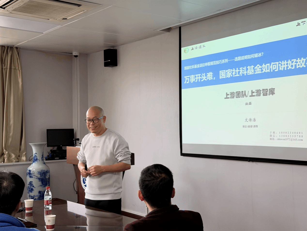 2025年10月31日,公司在长安校区文澜楼1329报告厅举办了“万事开头难,国家社科基金如何讲好故事开头”的基金申报辅导。辅导特邀云南老员工态经济学二级教授、“上游智库”首席专家文传浩教授主讲。公司社科处、公司拟申报国家社科和国家自科基金的老师及部分研究生等50余人参加了本次辅导,公司副经理杨博主持本次辅导。