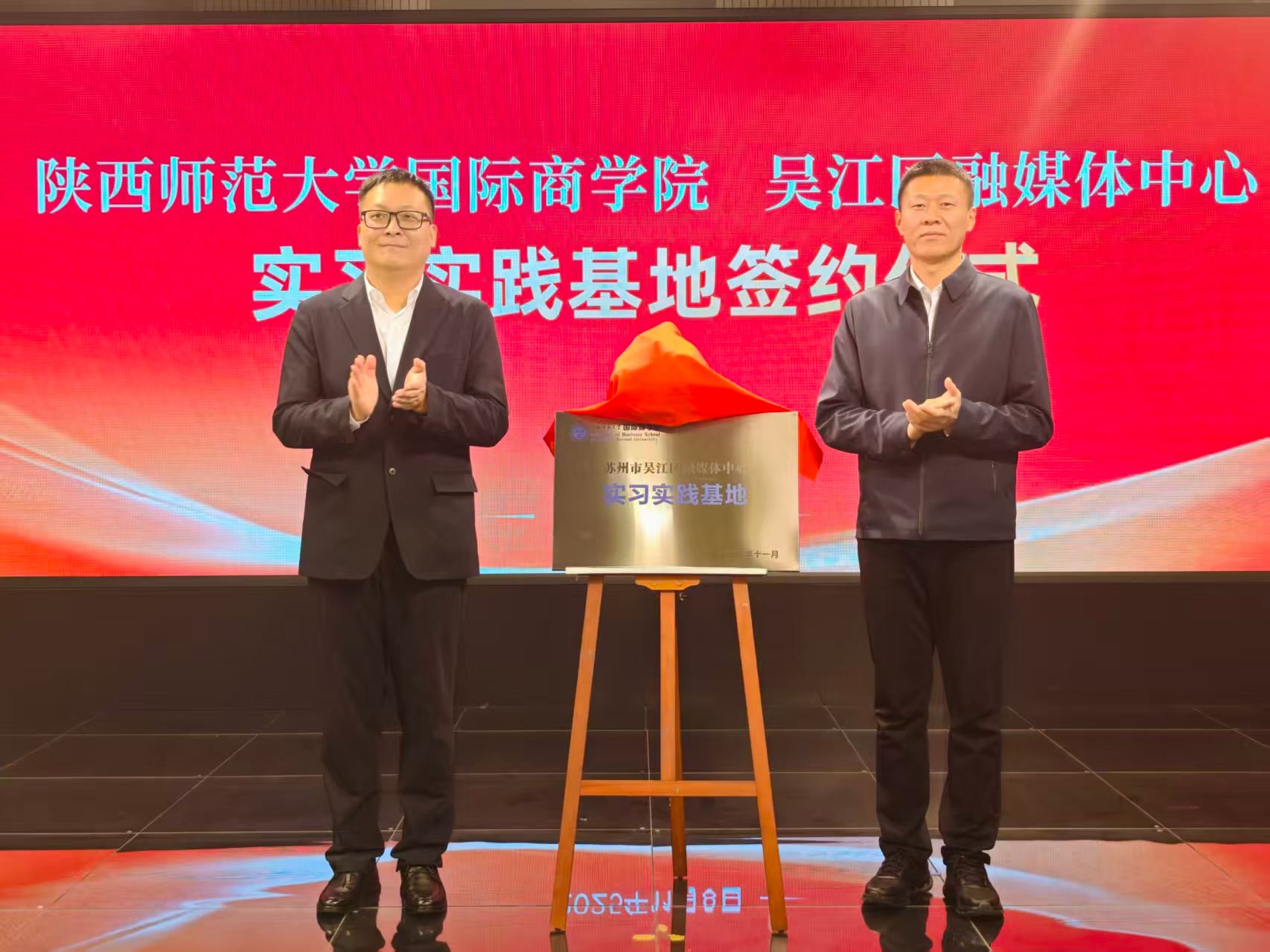 11月8日,公司与江苏省苏州市吴江区融媒体中心合作协议签署暨实习实践基地揭牌仪式在吴江日报社隆重举行。苏州市吴江区融媒体中心副主任、党委委员徐行,苏州市吴江区融媒体中心信息技术部主任顾文良,公司党委副书记、纪委书记邱远航,MBA、MPAcc中心常务副主任徐国东,研究生专职辅导员杨涛出席了仪式。