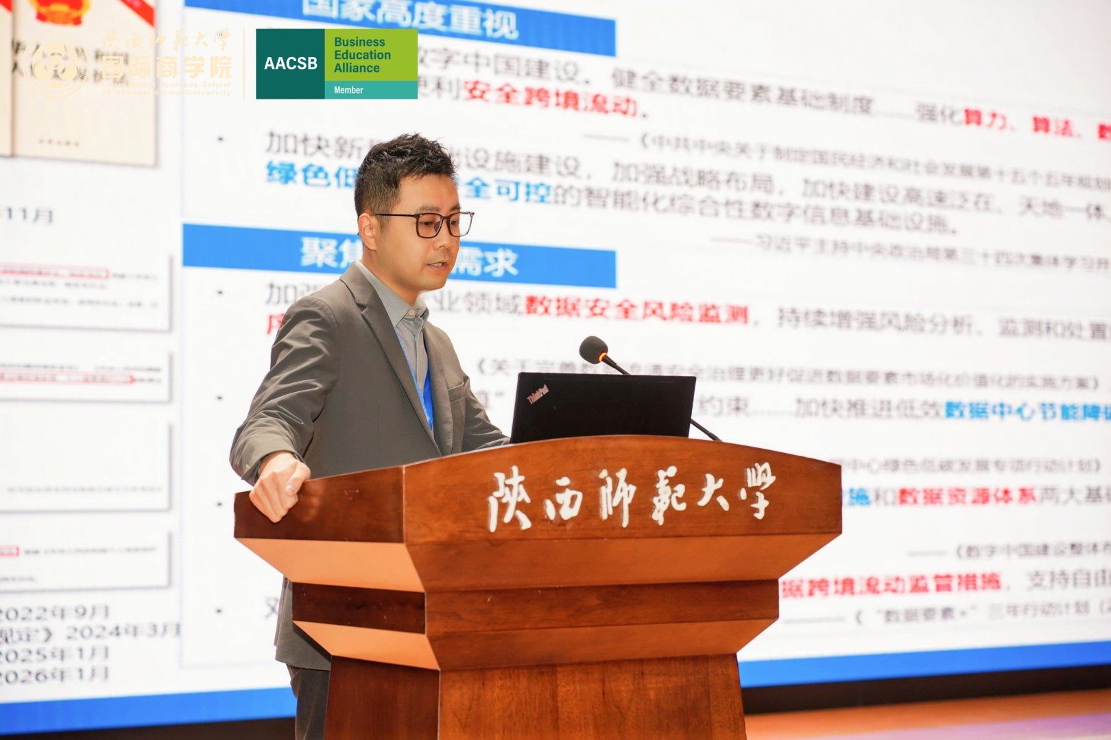 主旨报告由公司副经理尹海员教授主持。在此环节中,西安交通大学李金教授应邀作题为“数据跨境的风险管理”的主旨演讲。他指出,数据跨境流动在促进技术创新与资源高效配置的同时,也带来主权安全、个人隐私保护及合规监管等多重挑战。他强调需要坚持总体国家安全观,从数据分类分级管理制度和风险评估体系入手,强化企业合规内控体系建设,深化国际间监管互认与协作机制,实现数据要素安全可控、有序流动。
