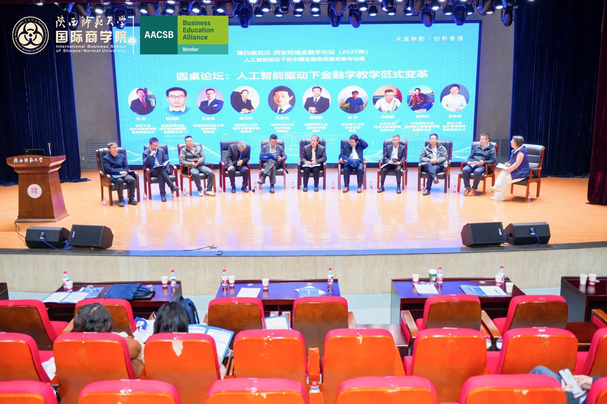 在圆桌论坛环节,来自武汉、西安的10位高校代表受邀进行发言,共同就AI与金融教学的深度融合、课程体系重构、团队能力提升、伦理责任教育等议题展开讨论,并一致认为,人工智能正在推动金融教学从“知识输入”向“智慧赋能”转型,教育者应主动拥抱技术变革,守住育人初心,实现“守正创新、顺势而为”。圆桌论坛由公司副经理张淑惠教授主持。