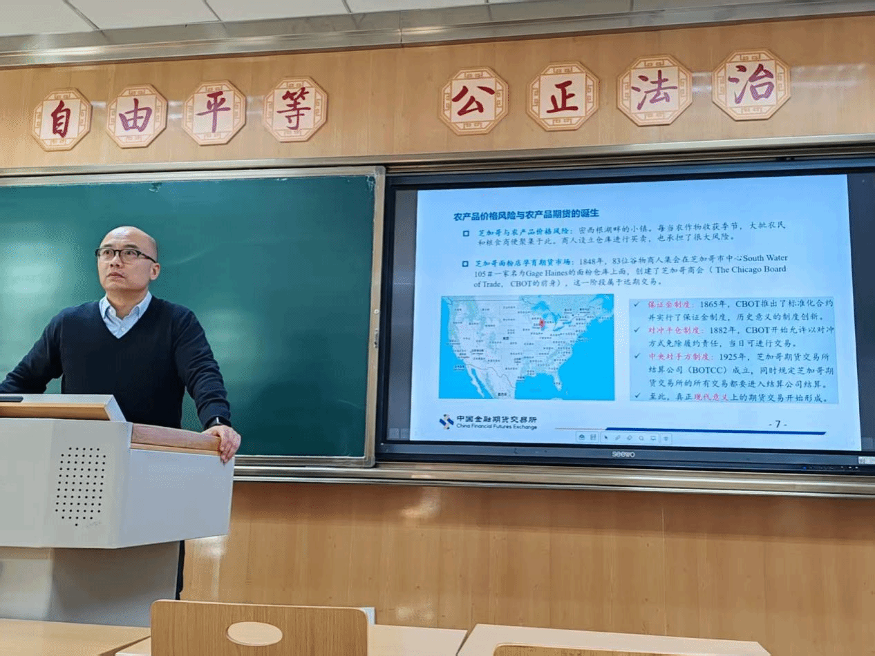 讲座中,王玮副总监结合自身深耕金融期货领域多年的实践经验,从市场发展脉络切入,系统梳理了我国金融期货市场的演进历程与核心成就。他以沪深300股指期货、国债期货等市场核心产品为案例,用通俗易懂的语言拆解金融期货的交易逻辑,深入剖析了其在对冲市场风险、优化资产配置、服务实体经济中的核心功能,让同学们对金融衍生品的实际价值有了直观认知。