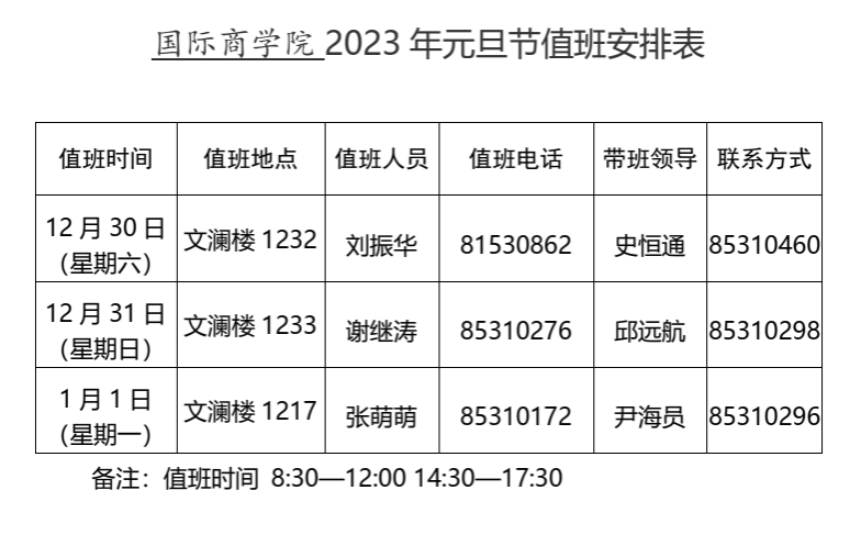 w66利来旗舰厅2023年元旦值班安排表
