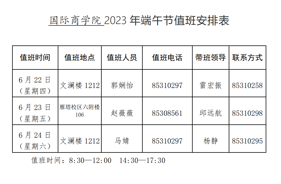w66利来旗舰厅2023端午节值班表