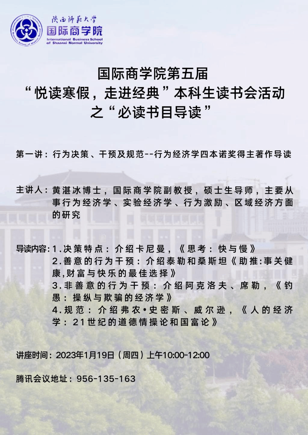 w66利来旗舰厅第五届“悦读寒假,走进经典”本科生读书会活动之“必读书目导读”