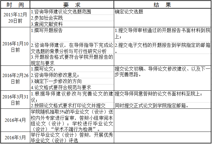 (三)毕业论文写作时间节点要求: