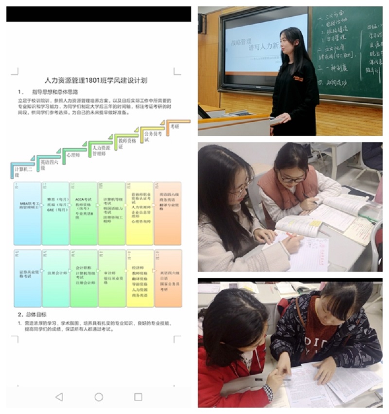 创新支部建设。规范开展“三会两制一课”,具体到个人,细化到制度。自主创新“团支部—团小组”机制,进行制度再巩固。建立课代表、学习小组、“一对一”帮扶、早晚自习制度;建立学习资源共享库、英语打卡群等,小组内部成员相互监督,并定期进行总结反馈。同时,对疫情期间无法进行实时在线学习的同学进行精准帮扶,保证学习质量和线上学习效果。