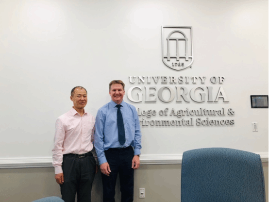 During his visit to the University of Georgia, Dean Lei Hongzhen met with Dr. Gregory Colson, Head of the Department of Agricultural and Applied Economics, as well as Professor Genti Kostandini and Dr. Chen Zhen. He also held a meeting with Dr. Dean Kopsel, Associate Dean for Academic Affairs in the College of Agricultural and Environmental Sciences. The two parties discussed topics including student exchange programs and faculty exchange initiatives.
