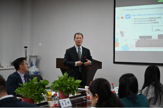 The opening session was chaired by Mr. Si Peifeng, Party Secretary of IBS. He welcomed the committee members and expressed gratitude for their support and concern for the college's work over the past three years. Subsequently, Dean Lei Hongzhen responded to the suggestions and advice offered by the board members at the previous conference and reported on the college's development from 2022 to 2023. Dr. Li Zhengfeng, Director of the International Cooperation and Accreditation Office, then introduced the construction progress of the college's Assurance of Learning (AoL) system.