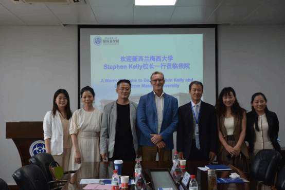 On the morning of June 7, 2023, a delegation from Massey University, New Zealand, led by Professor Stephen Kelly, Deputy Vice-Chancellor and Dean of the Business School, along with Ms. Jade Zhou, Business Manager of the Business School, visited the International Business School for discussions and exchanges. The meeting was attended by Mr. Si Peifeng, Party Secretary of IBS; Professor Lei Hongzhen, Dean of IBS; Dr. Lan Juanli, Director of the First-Class Discipline Construction Office; Dr. Li Zhengfeng, Director of the International Cooperation and Accreditation Office; Ms. Jing Tingting, Head of the International Programs and Cooperation Section; and Ms. Li Xinran, a staff member from the same section.